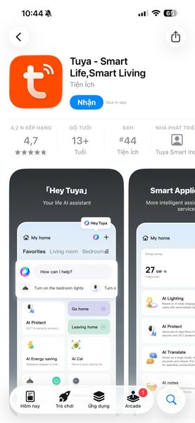 - Cách 2: Truy cập kho ứng dụng App Store (đối với iPhone/iOS) hoặc Google Play (đối với Android), tìm kiếm từ khóa "Tuya" và nhấn cài đặt.