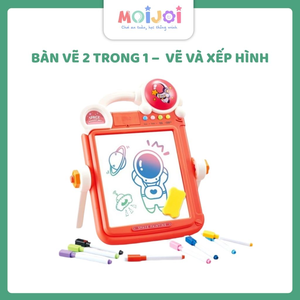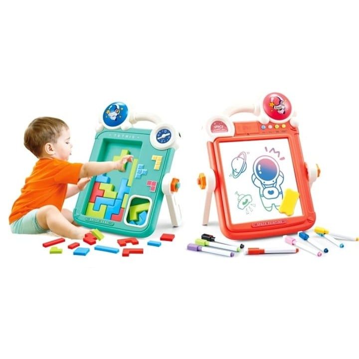 Thiết kế 2 trong 1: Một mặt bảng vẽ sáng tạo, một mặt bảng xếp hình logic.