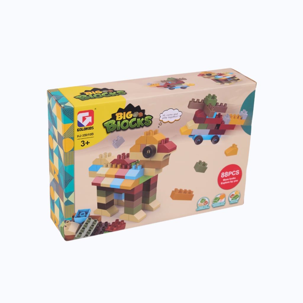 Khơi dậy trí tưởng tượng và khả năng sáng tạo của bé với bộ xếp hình Big Blocks gồm 88 chi tiết khối lớn đầy màu sắc. Sản phẩm giúp bé dễ dàng lắp ráp thành nhiều mô hình thú vị như máy bay, động vật, phương tiện… phù hợp cho cả bé trai và bé gái.