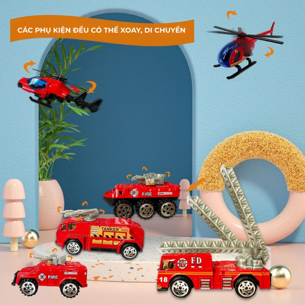 Bộ xe cứu hỏa hợp kim 15 chiếc – mô hình xe cứu hỏa tỉ lệ 1:64