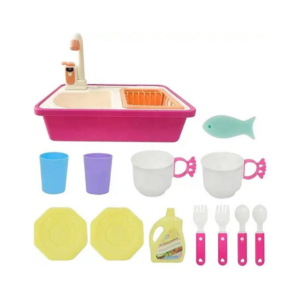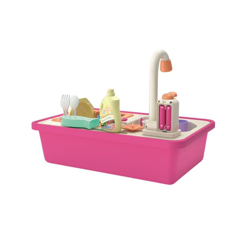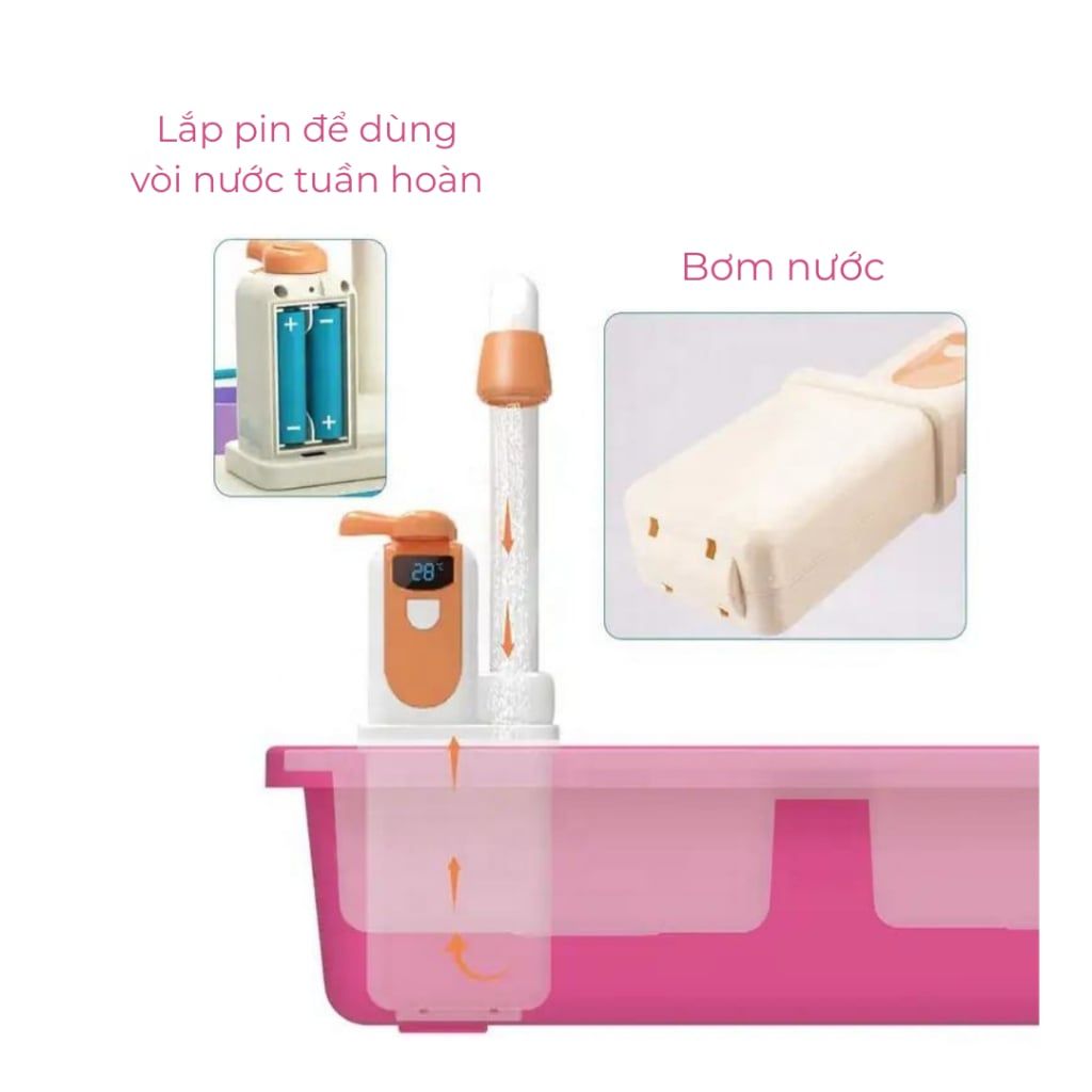 Vòi nước chảy thật: Sử dụng bơm điện để nước tuần hoàn, cho bé cảm giác như đang rửa bát thật.