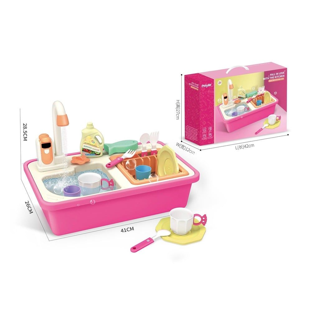 Bồn rửa bát đồ chơi cho bé Peiyile – Chậu mô phỏng nhà bếp, vòi nước chảy thật, kèm phụ kiện đầy đủ