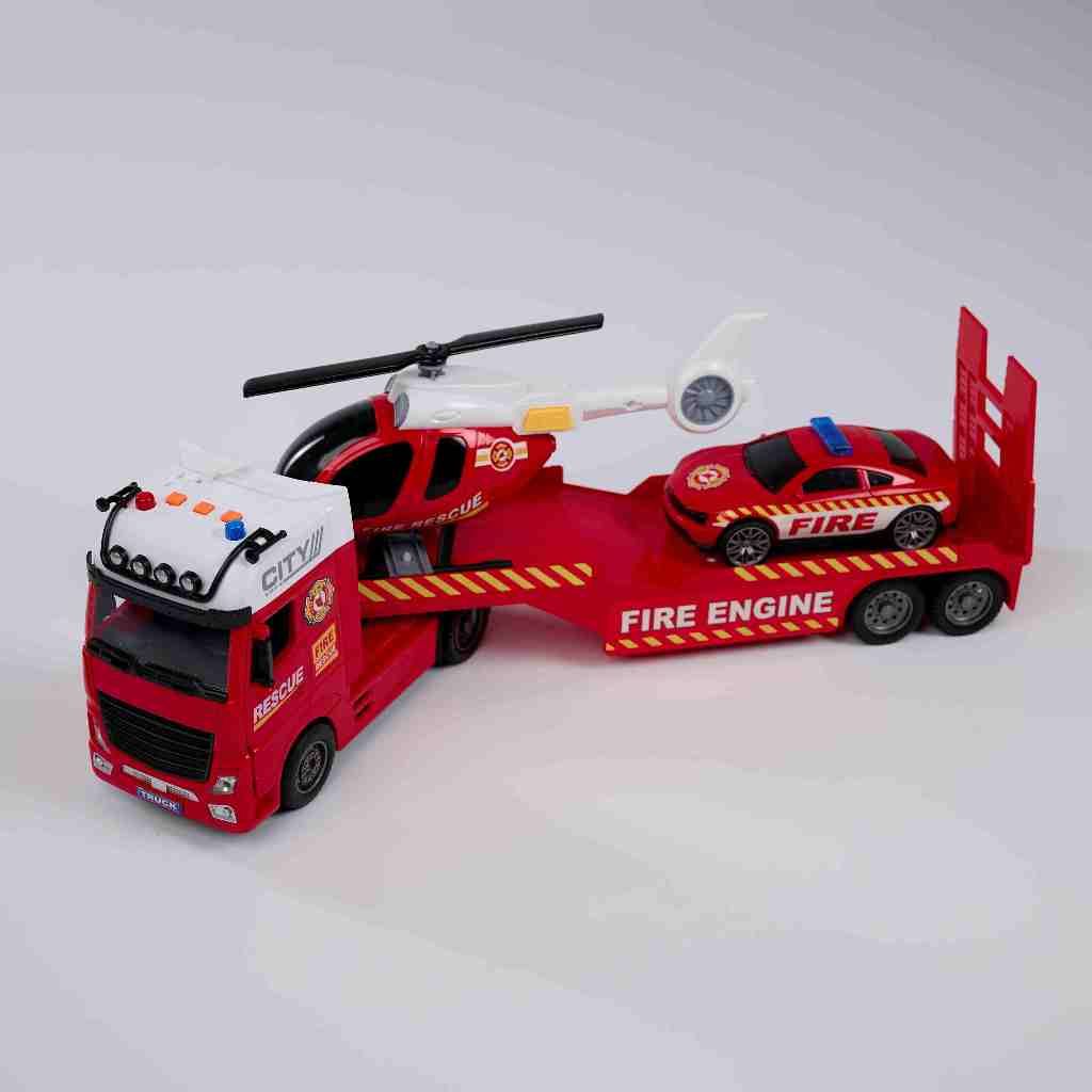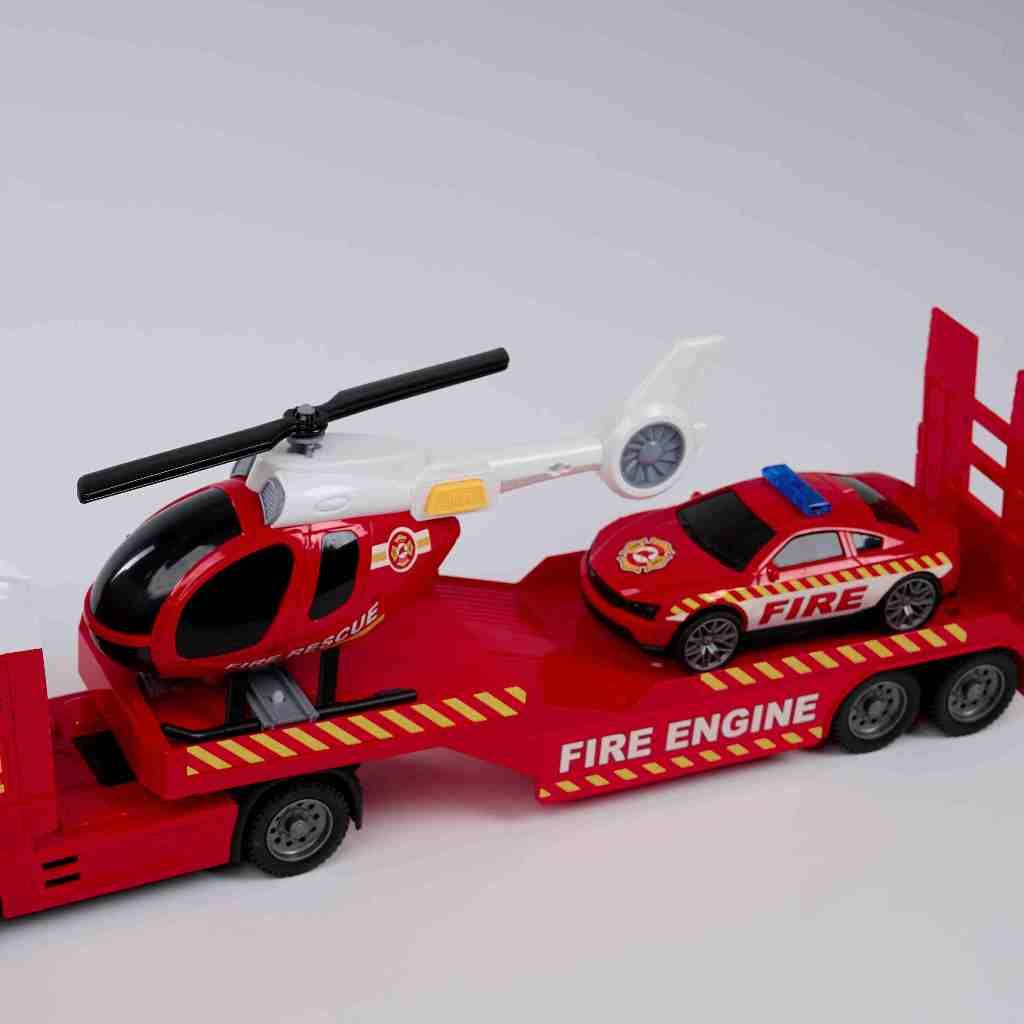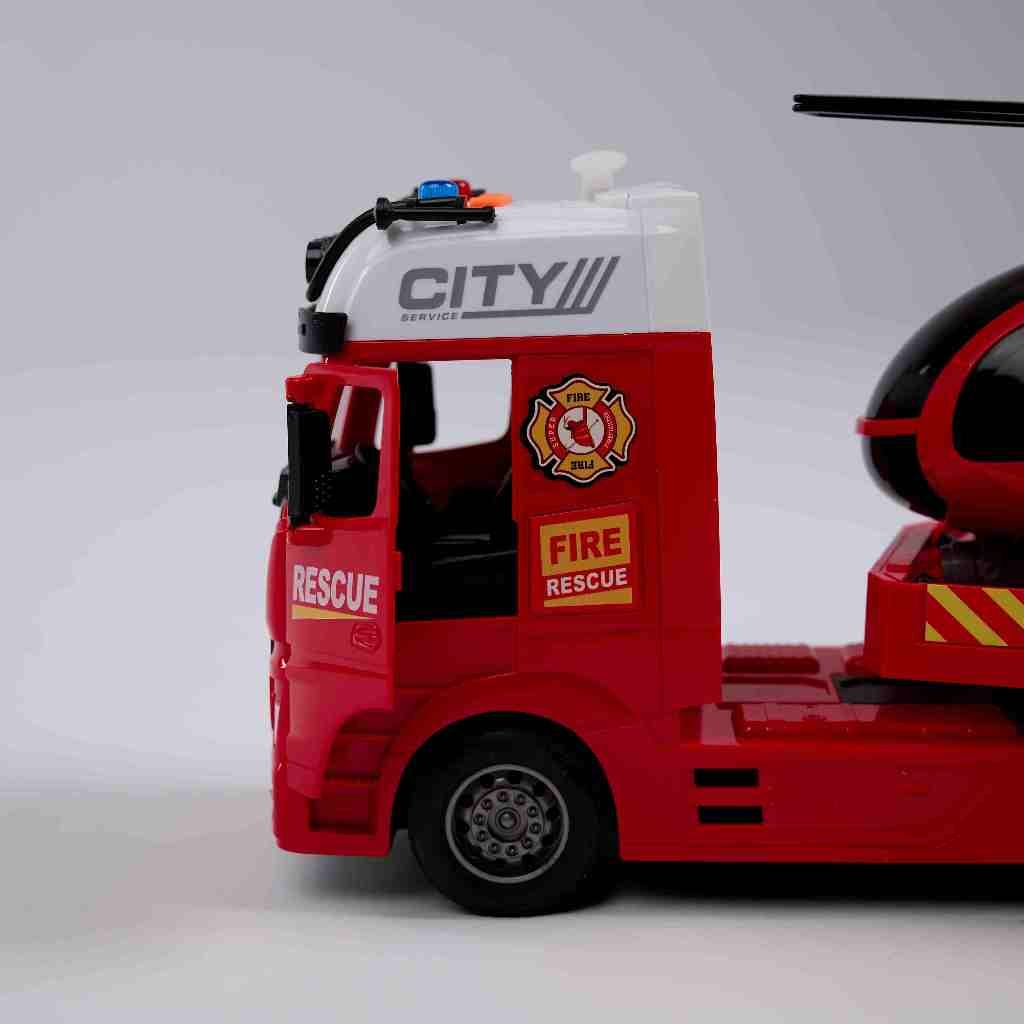 Mang đến cho bé trải nghiệm giải cứu hoành tráng với bộ đồ chơi xe cứu hỏa kéo theo máy bay trực thăng! Thiết kế mô phỏng sống động, tích hợp các chức năng đèn, âm thanh và khả năng tháo lắp linh hoạt giúp bé nhập vai vào những nhiệm vụ cứu hộ hấp dẫn như thật.