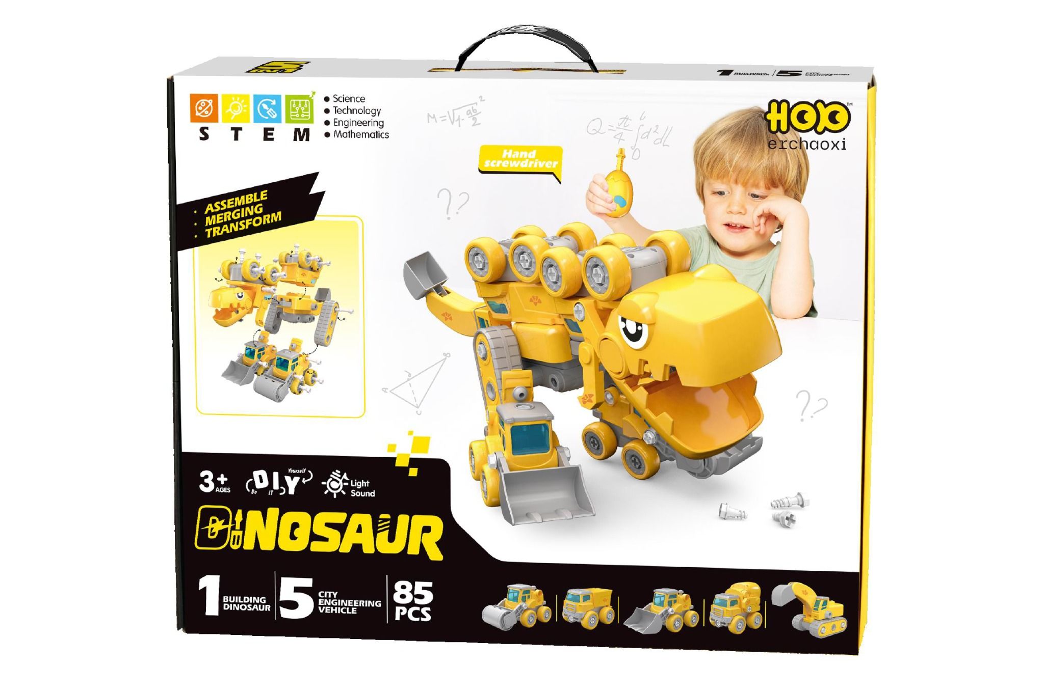 Bộ đồ chơi lắp ráp khủng long 5in1 – 85 chi tiết – mô hình biến hình thành xe công trình – steam learning