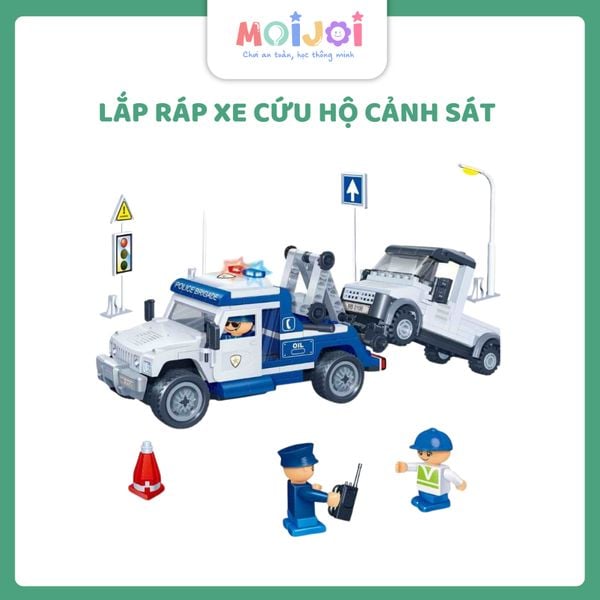 Đồ chơi lắp ráp Xe cứu hộ cảnh sát Police Tow Truck BanBao 8345 (245 chi tiết) là bộ xếp hình chủ đề cảnh sát với thiết kế mô phỏng xe kéo cứu hộ hiện đại. Bộ sản phẩm bao gồm xe kéo, biển báo giao thông và nhân vật đi kèm, giúp bé dễ dàng nhập vai và tạo nên nhiều tình huống giao thông thú vị.