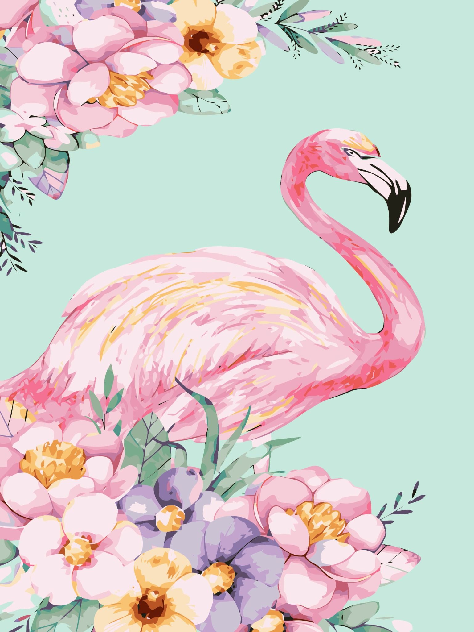 Khi tô màu theo các ký hiệu số in sẵn, từng chi tiết từ bộ lông mềm mại của hồng hạc, cánh hoa nhiều sắc và nền trời dịu êm sẽ hiện lên rõ nét, mang lại cảm giác tươi mới và sang trọng cho không gian.