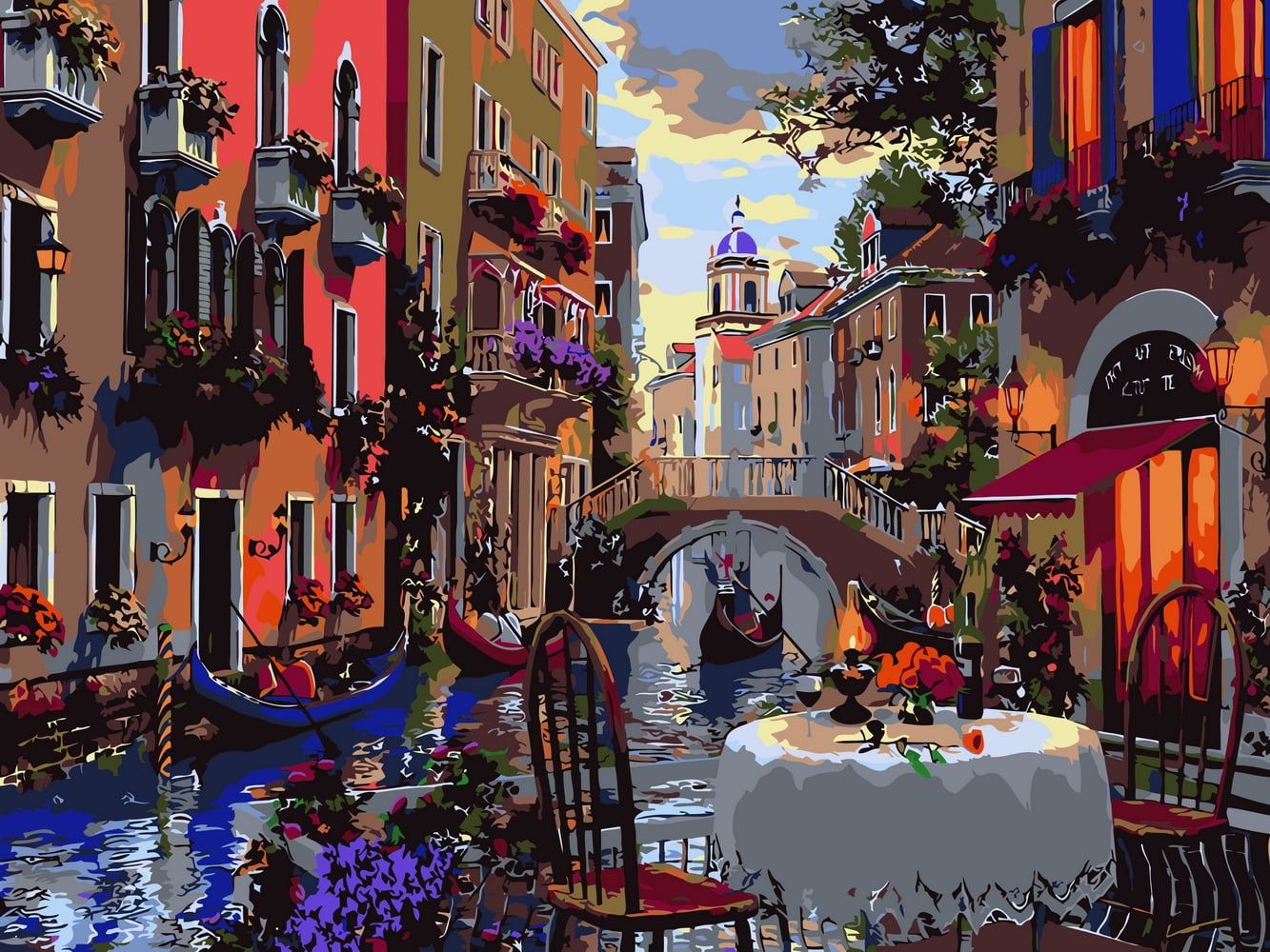 Bộ tranh canvas phố cổ Venice 31 – Tranh tô màu theo số, Không khung, kèm màu, cọ, giấy phác thảo, hình mẫu