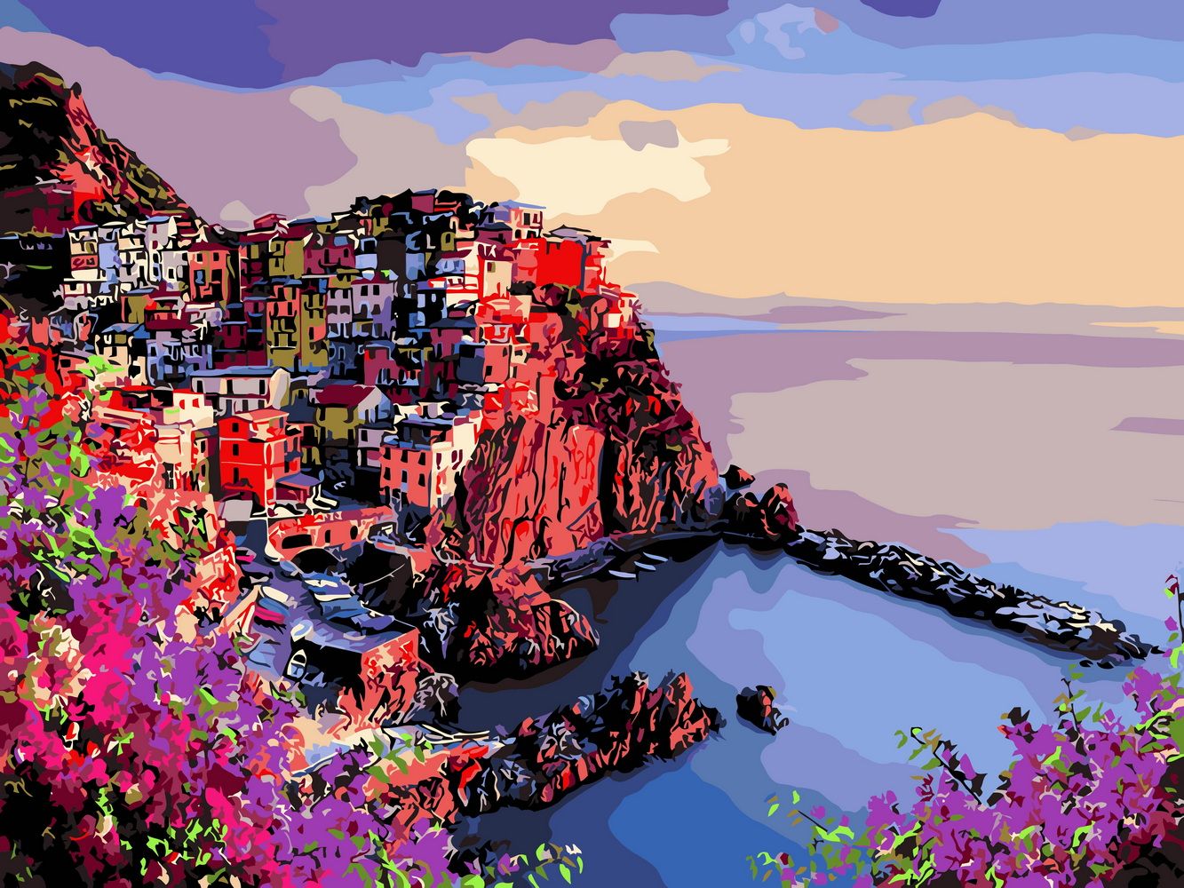 Bộ tranh canvas phong cảnh biển và thị trấn ven biển 30 – Tranh tô màu theo số, Không khung, kèm màu, cọ, giấy phác thảo, hình mẫu
