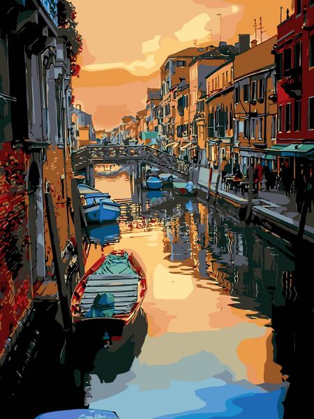 Bộ tranh canvas phong cảnh kênh đào Venice lúc hoàng hôn 29 – Tranh tô màu theo số, Không khung, kèm màu, cọ, giấy phác thảo, hình mẫu