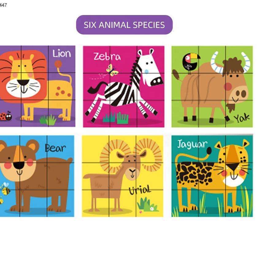 Khám phá thế giới động vật đầy màu sắc với bộ xếp hình khối lập phương chủ đề động vật. Mỗi khối được in hình minh họa động vật đáng yêu như sư tử, gấu, hươu cao cổ, ngựa vằn và nhiều loài thú khác. Bé có thể xoay và ghép các mặt khối để tạo thành bức tranh hoàn chỉnh, vừa chơi vừa rèn luyện khả năng tư duy logic, trí tưởng tượng và kỹ năng phối hợp tay – mắt.