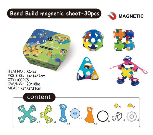 Khơi dậy trí tưởng tượng và khả năng sáng tạo của bé với Bộ Bend Build Magnetic Sheet 30PCS. Các mảnh ghép bằng nhựa mềm kết hợp nam châm cho phép bé uốn cong linh hoạt để tạo nên nhiều mô hình độc đáo như robot, động vật, khối hình 3D, xe, hoặc mô hình nghệ thuật.