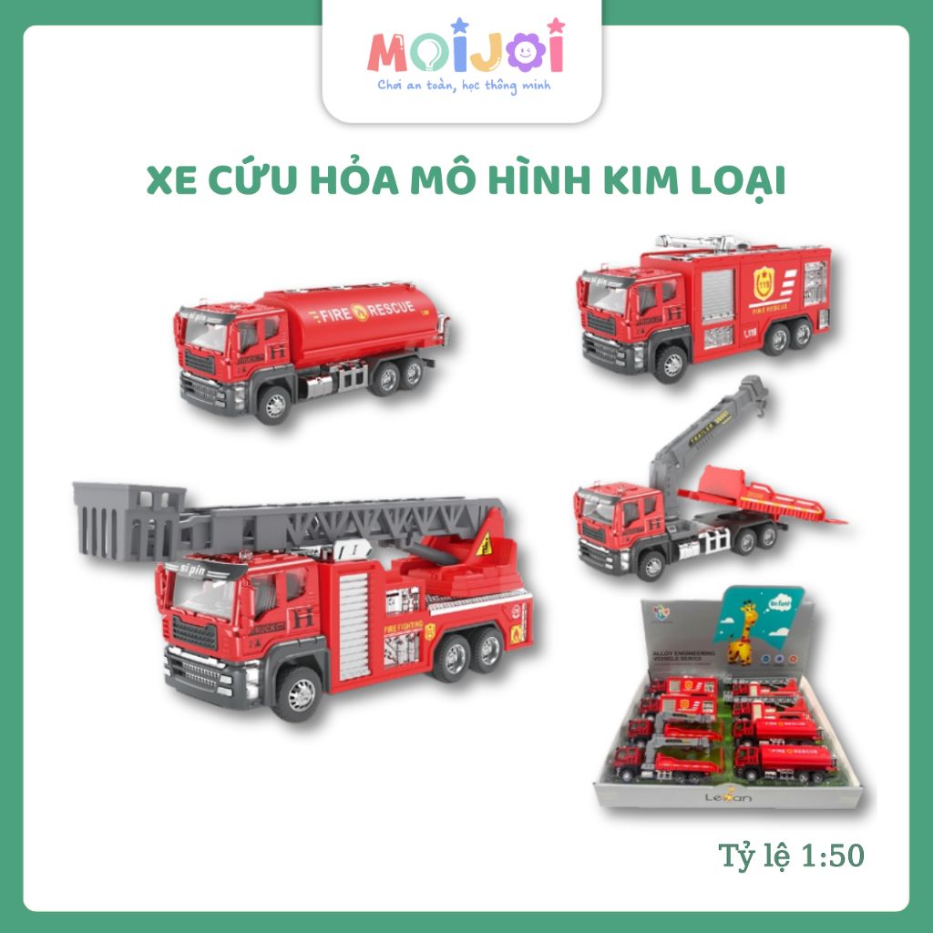 combo 4 xe cứu hỏa mô hình kim loại tỉ lệ 1:50 phun nước /bồn nước/thang nâng/cần cẩu