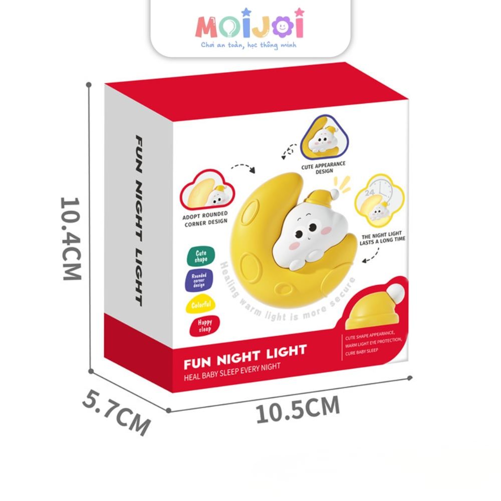 Đèn Ngủ Hình Mặt Trăng Ôm Mây Fun Night Light – Ánh Sáng Dịu Êm Cho Giấc Ngủ Bé Yêu