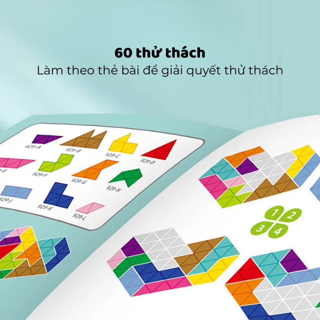 • Thành phần: Bộ mảnh ghép hình tam giác nhiều màu + Sách hướng dẫn lắp ghép
