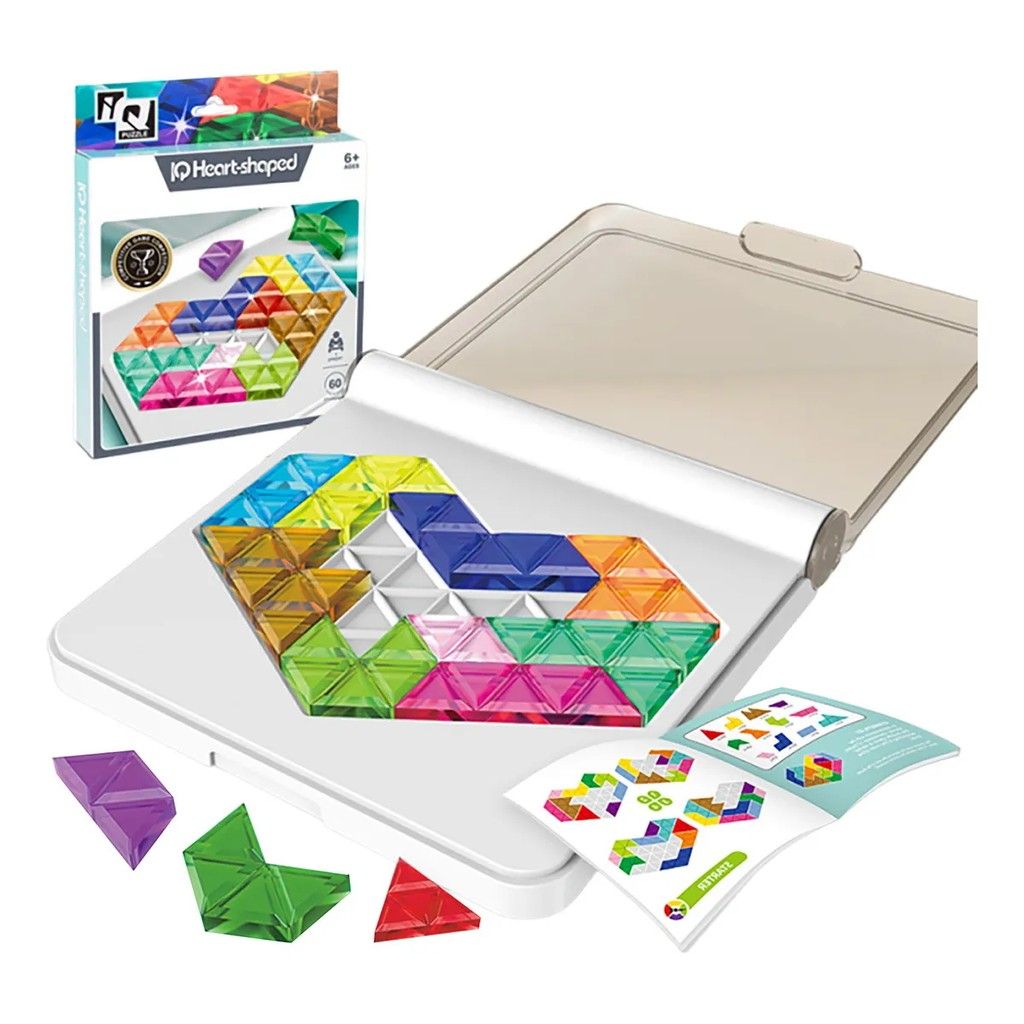 Bộ đồ chơi IQ Heart-shaped là trò chơi xếp hình trí tuệ đầy thử thách, giúp rèn luyện tư duy logic, khả năng quan sát và sáng tạo. Sản phẩm gồm nhiều mảnh ghép hình tam giác, được phối màu rực rỡ, dùng để lắp ghép thành hình trái tim hoặc nhiều mô hình khác nhau theo gợi ý trong sách hướng dẫn.