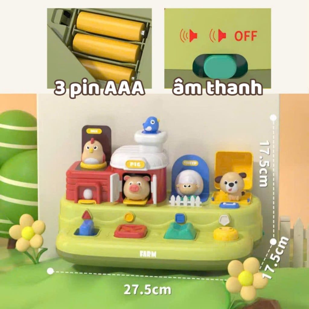 Thiết kế hộp bật nhảy 5 con thú: Mỗi nút bấm, gạt, vặn, xoay sẽ làm một con thú bật lên, tạo bất ngờ thú vị cho bé.