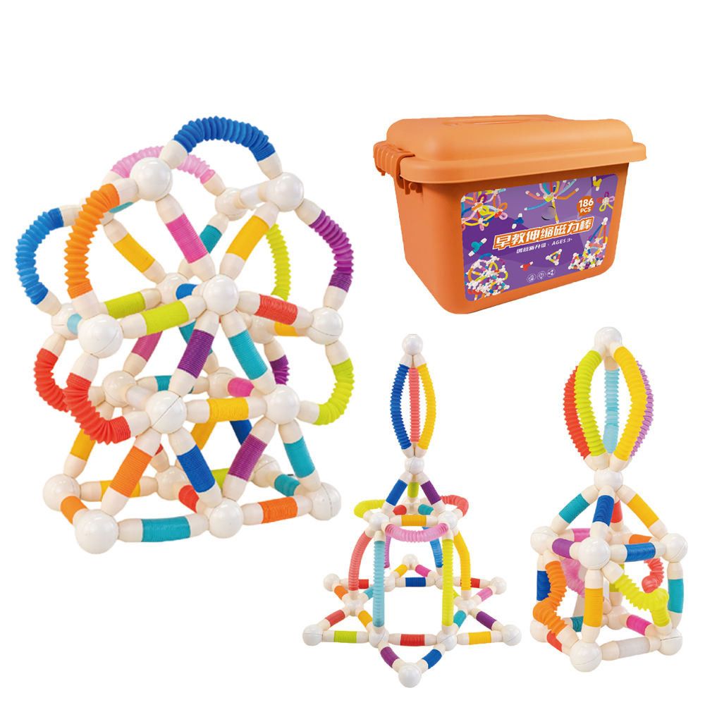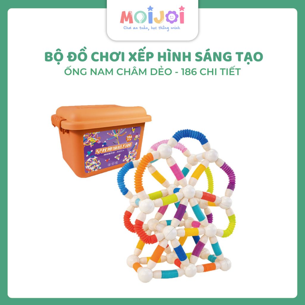 Bộ đồ chơi xếp hình ống nam châm dẻo sáng tạo Pro Max – 186 chi tiết