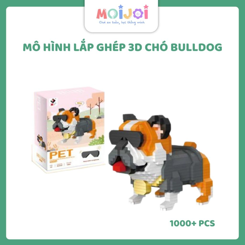 Đồ chơi lắp ráp mô hình chó Pit bull đeo kính 3D WL9147 (hơn 1000 chi tiết)