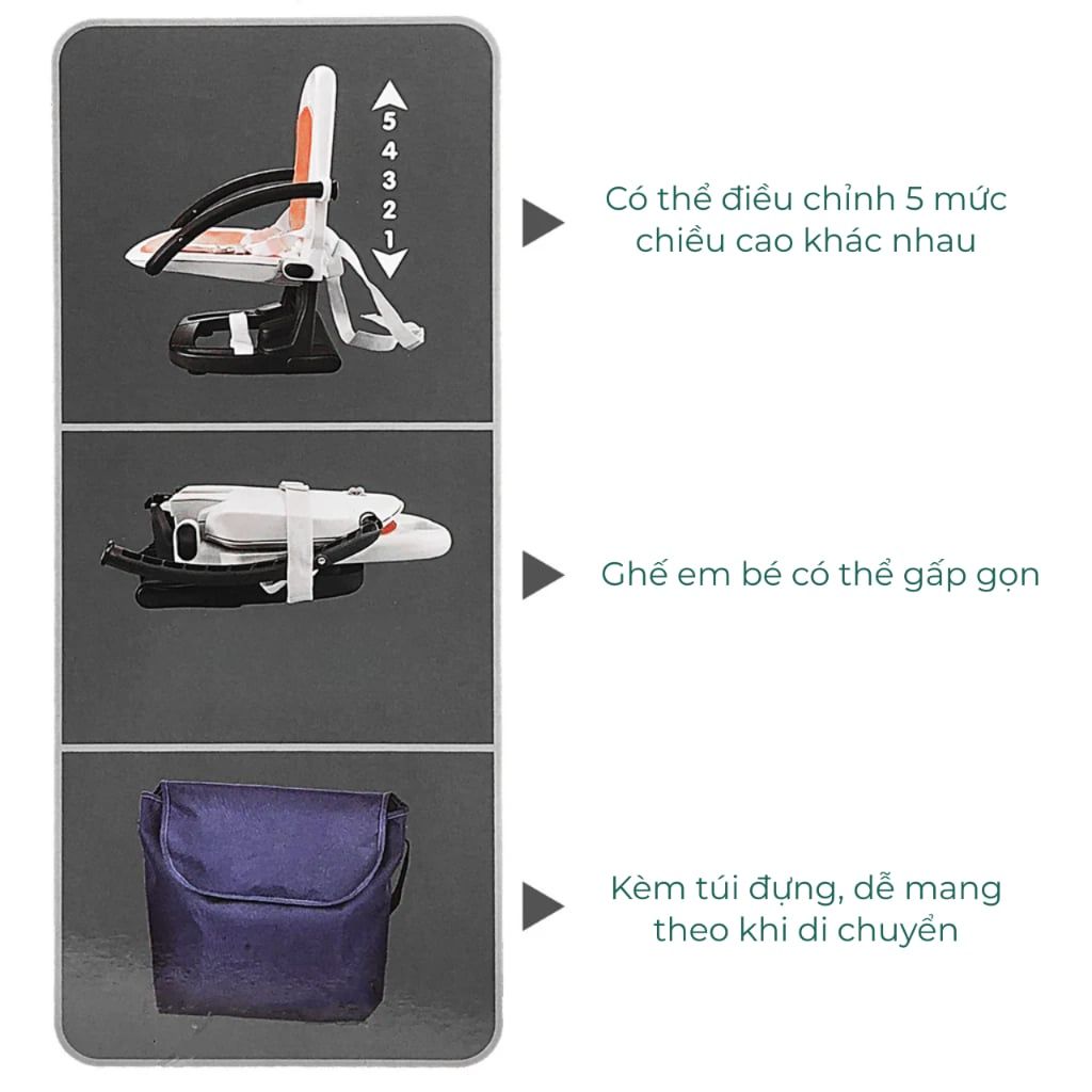 Sử dụng linh hoạt như ghế ăn, ghế chơi hoặc ghế ngồi đa năng.