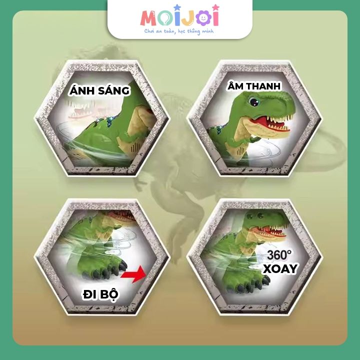 Khủng long điều khiển từ xa RC dinosaur – mô hình T-Rex phát sáng, xoay 360 độ