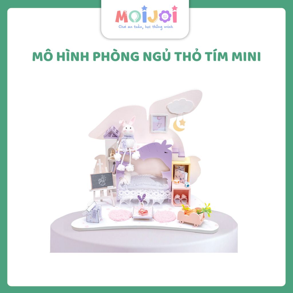 Mô hình DIY Book Nook phòng ngủ giường tầng cho bé - Mô hình phòng ngủ giường tầng thỏ tím mini