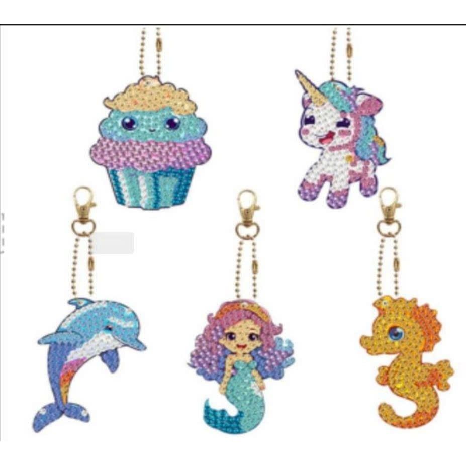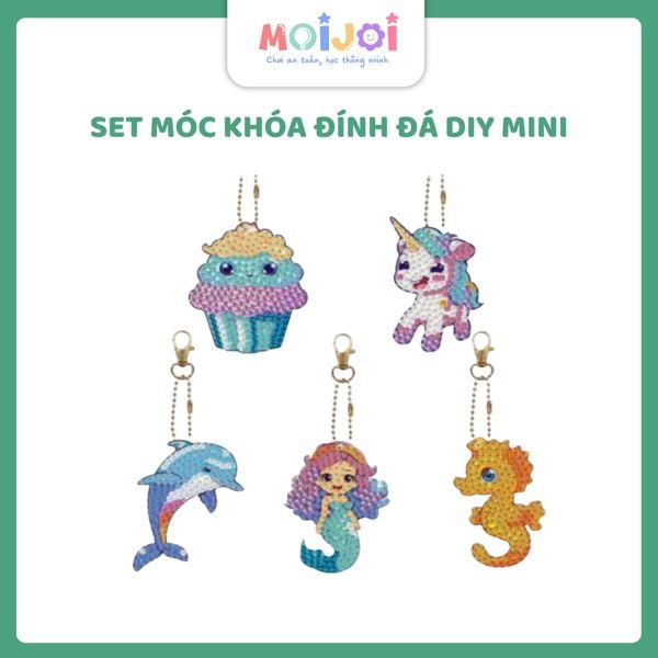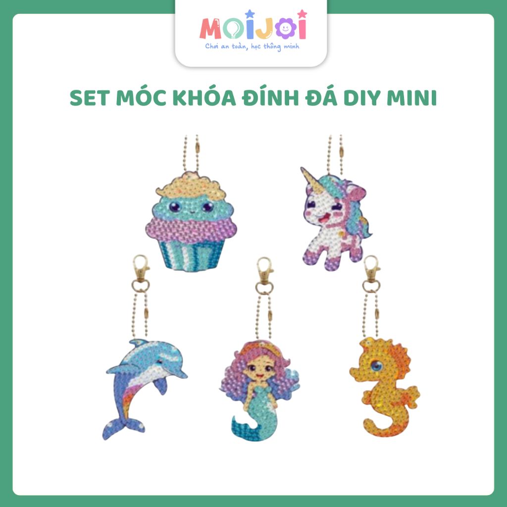 Set móc khóa đính đá DIY mini – Nhiều mẫu hình thú & chủ đề dễ thương