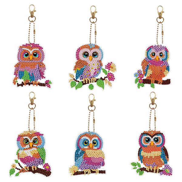 Set 6 móc khóa đính đá DIY hình cú mèo – Bộ thủ công sáng tạo, hạt pha lê lấp lánh, tặng dụng cụ đầy đủ