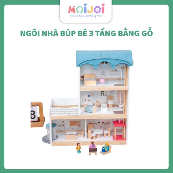 Ngôi nhà búp bê 3 tầng bằng gỗ là món quà tuyệt vời cho các bé yêu thích sáng tạo và nhập vai. Với thiết kế 3 tầng sang trọng, nhiều phòng chức năng như phòng khách, phòng ngủ, bếp, sân thượng…, đi kèm bộ nội thất gỗ thu nhỏ tinh xảo, sản phẩm mang đến trải nghiệm chơi vừa thú vị vừa phát triển trí tưởng tượng cho trẻ.