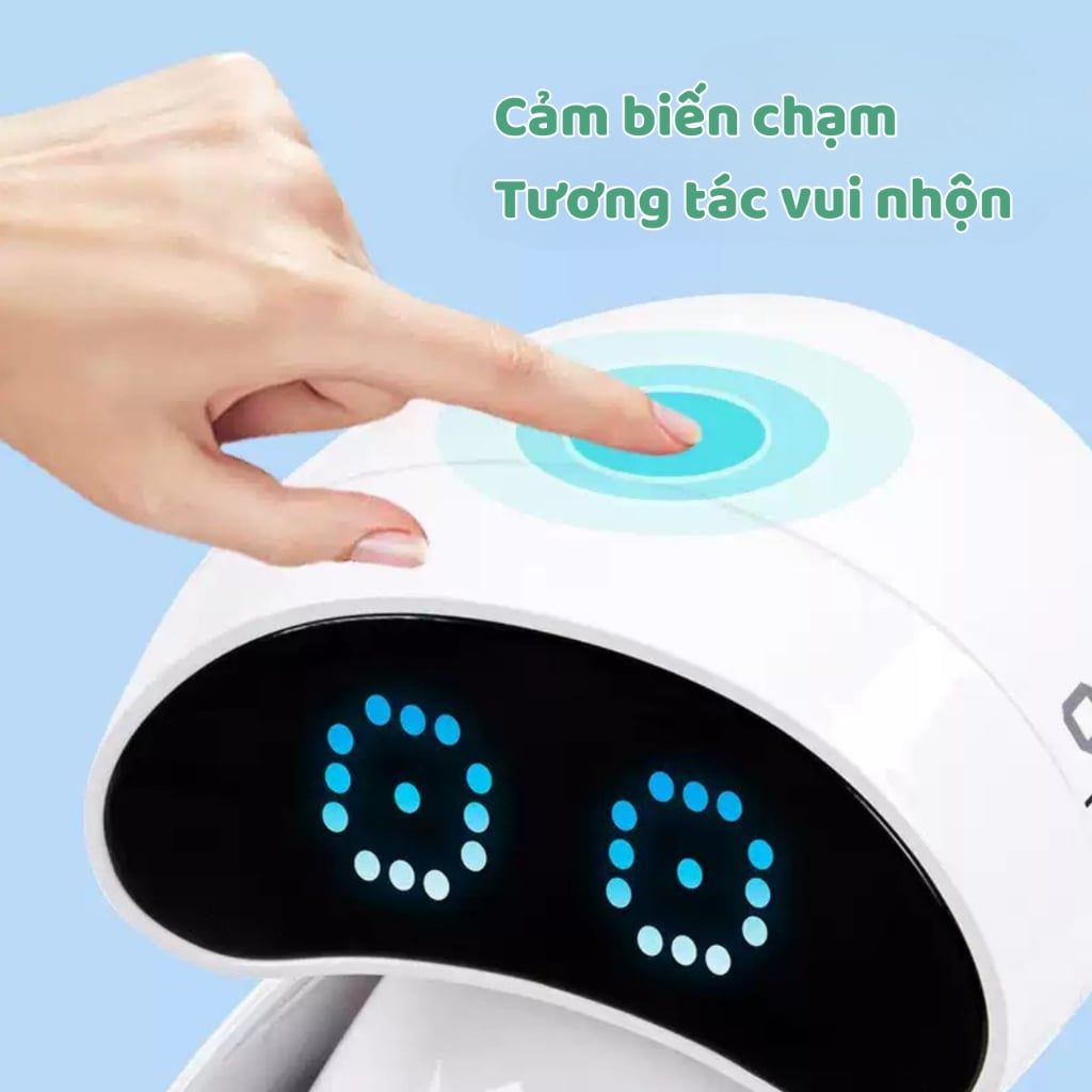- Cảm ứng chạm: Robot phản hồi bằng cử động & biểu cảm LED dễ thương.