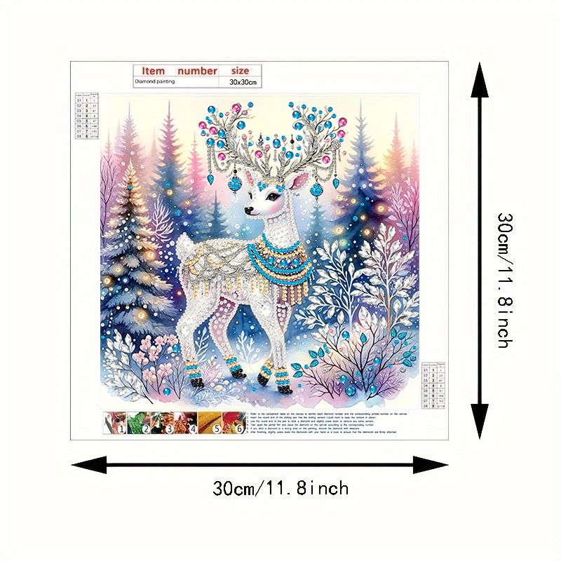 Tranh đính đá 5D Tuần Lộc Tuyết – Nghệ thuật mùa đông lấp lánh, kích thước 30x30cm, trang trí và quà tặng sang trọng