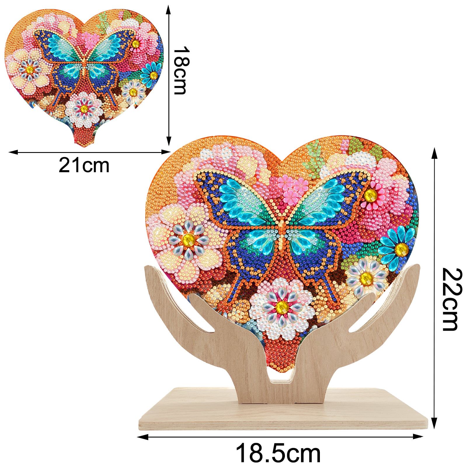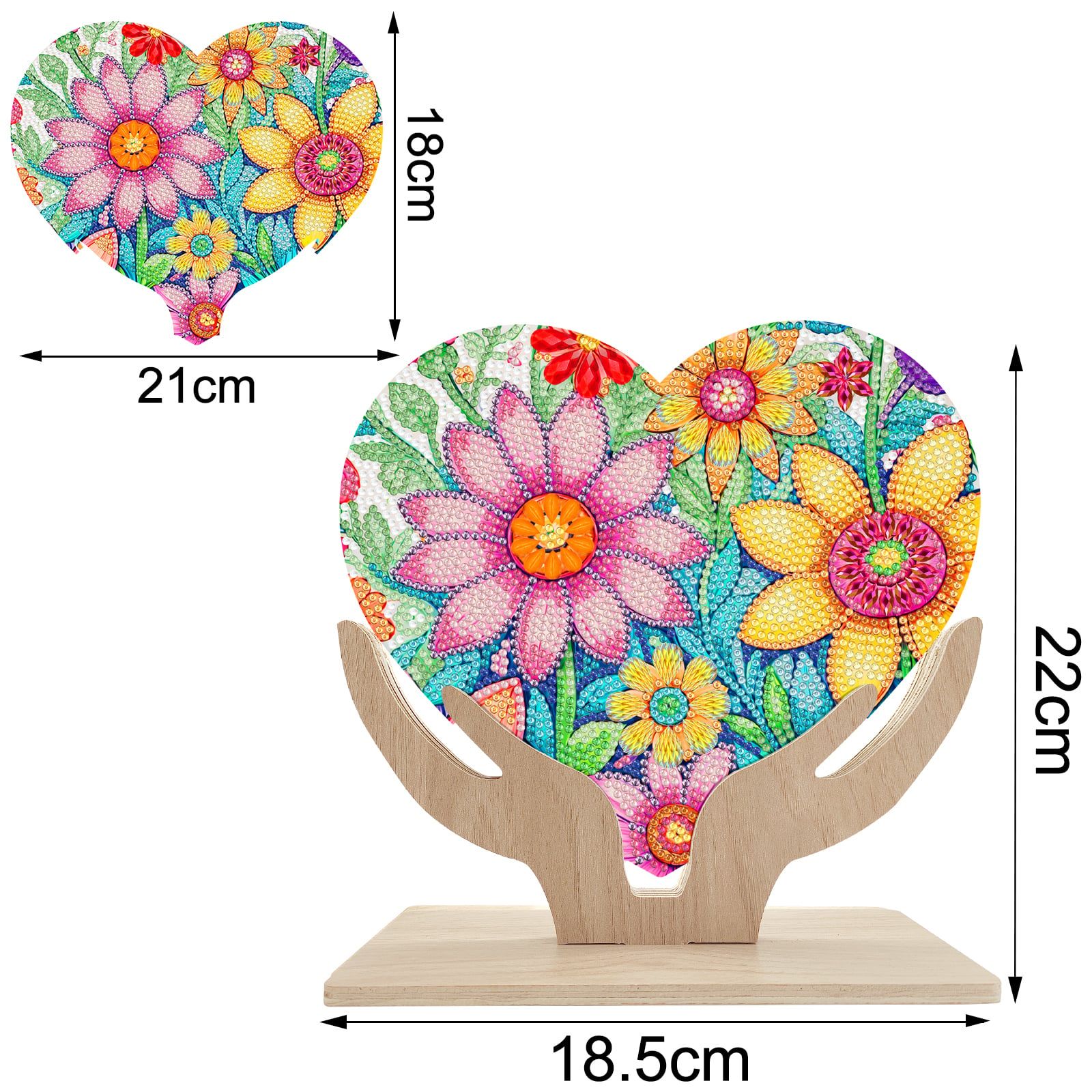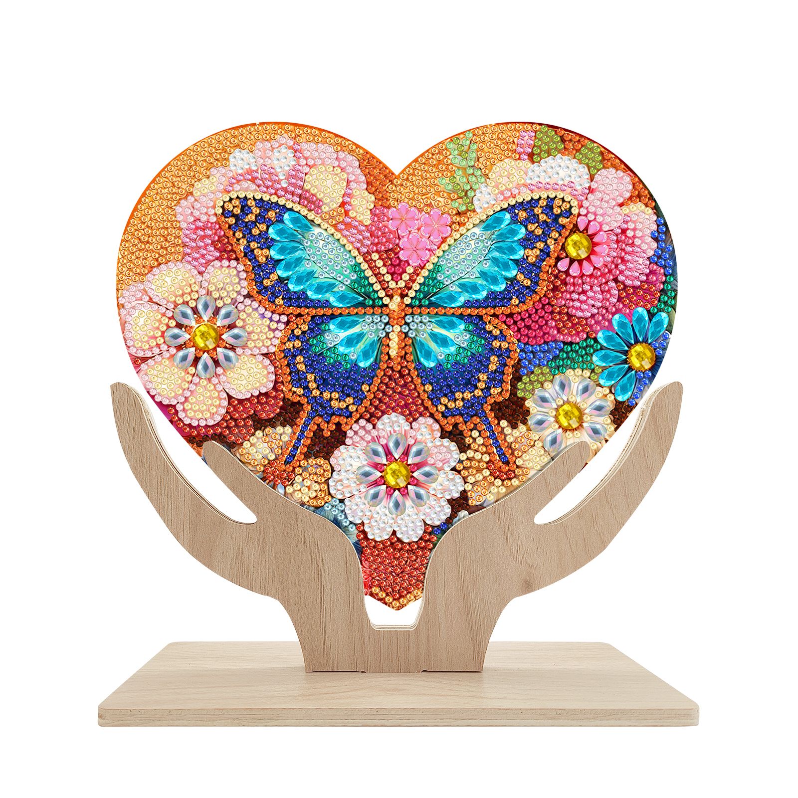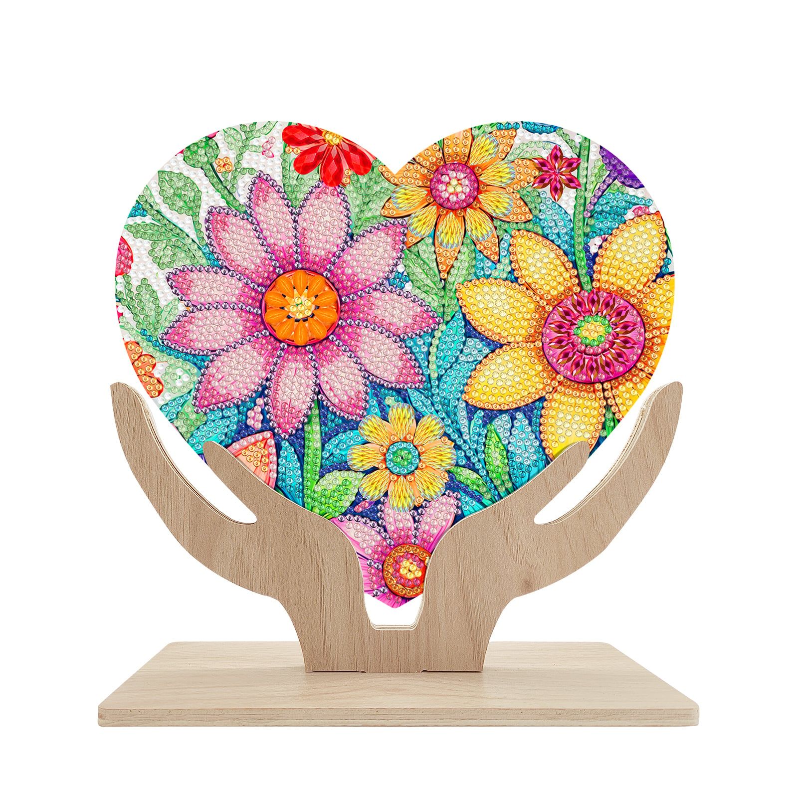 Tranh đính đá để bàn hình trái tim – đế gỗ, dễ thao tác