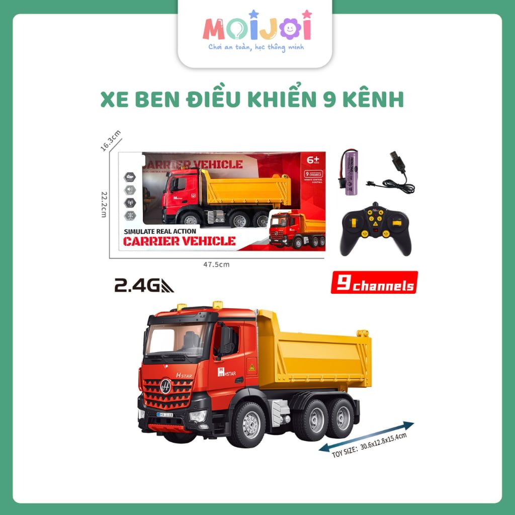 Xe ben điều khiển từ xa 9 kênh 2.4GHz – đồ chơi điều khiển mô hình xe tải ben cho bé