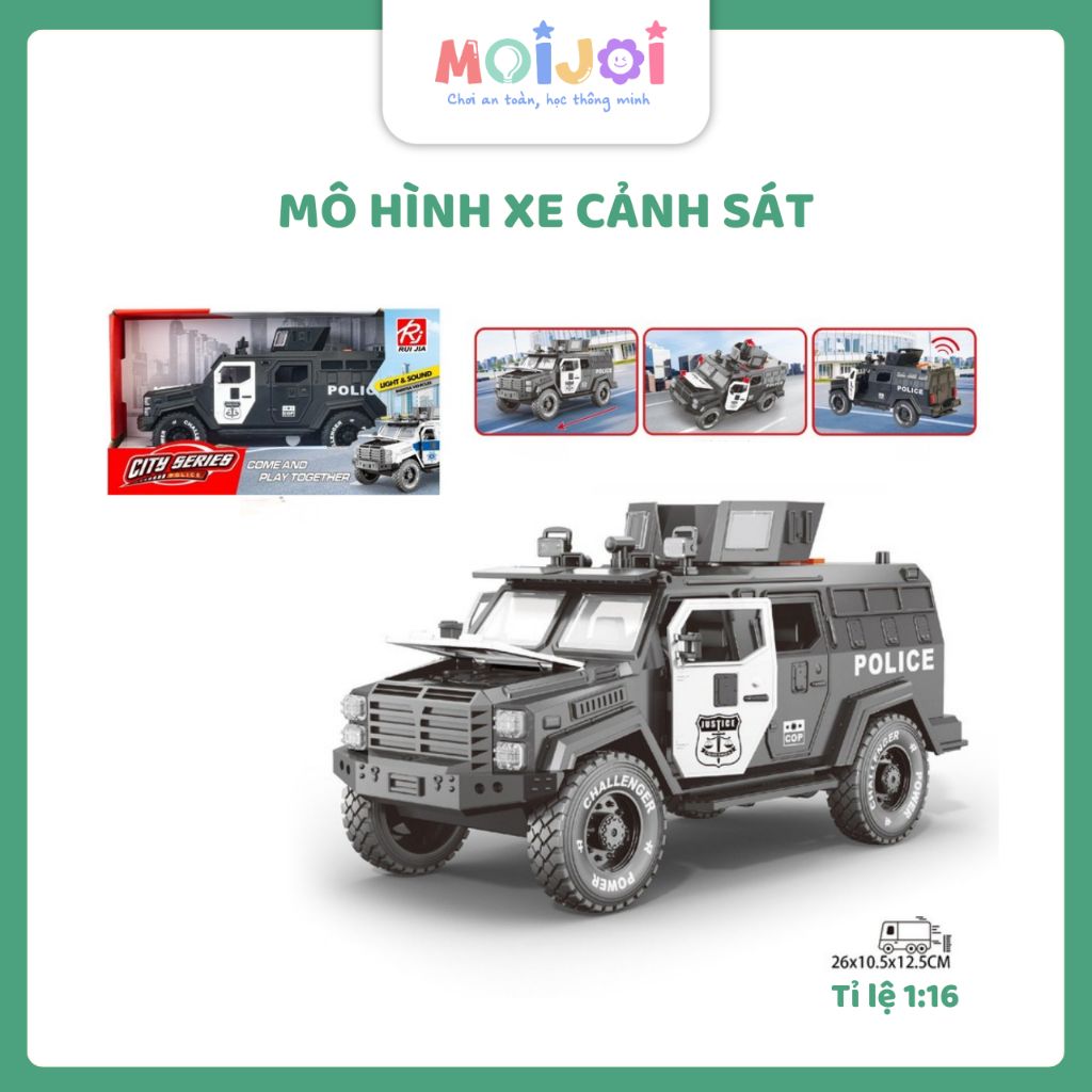 • Thiết kế mô phỏng xe cảnh sát tuần tra hiện đại với kiểu dáng mạnh mẽ và chi tiết sắc nét.