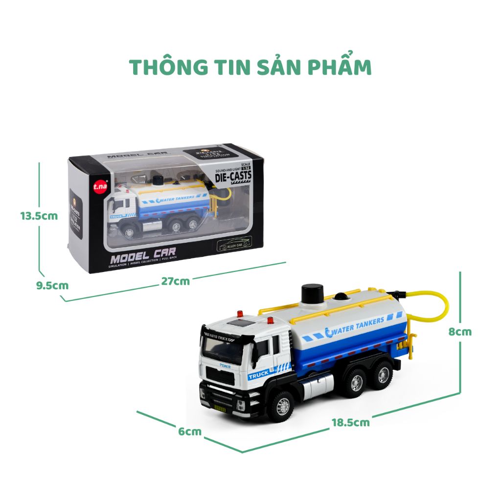 Xe bồn chở nước hợp kim - mô hình tỉ lệ 1:22 có đèn và âm thanh - Đồ chơi mô phỏng xe bồn phun nước cho bé