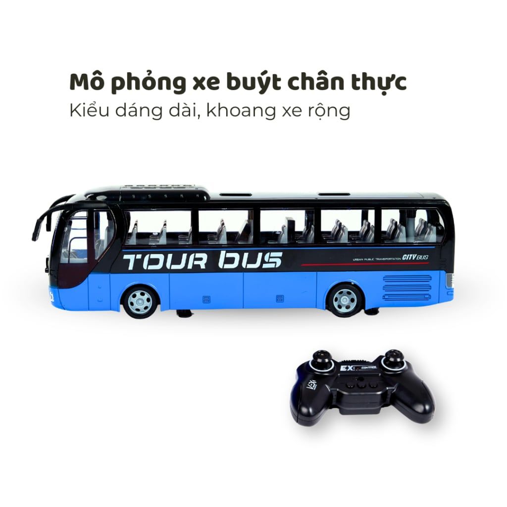 Xe buýt điều khiển được thiết kế mô phỏng như thật, với tỷ lệ và chi tiết chân thực từ ngoại hình đến màu sắc. Sản phẩm có hai phiên bản màu nổi bật: xanh – đen và vàng – đen. Với tay điều khiển từ xa dễ sử dụng, xe di chuyển mượt mà tiến, lùi, rẽ trái, rẽ phải, mang lại trải nghiệm lái thú vị cho cả trẻ em và người lớn.