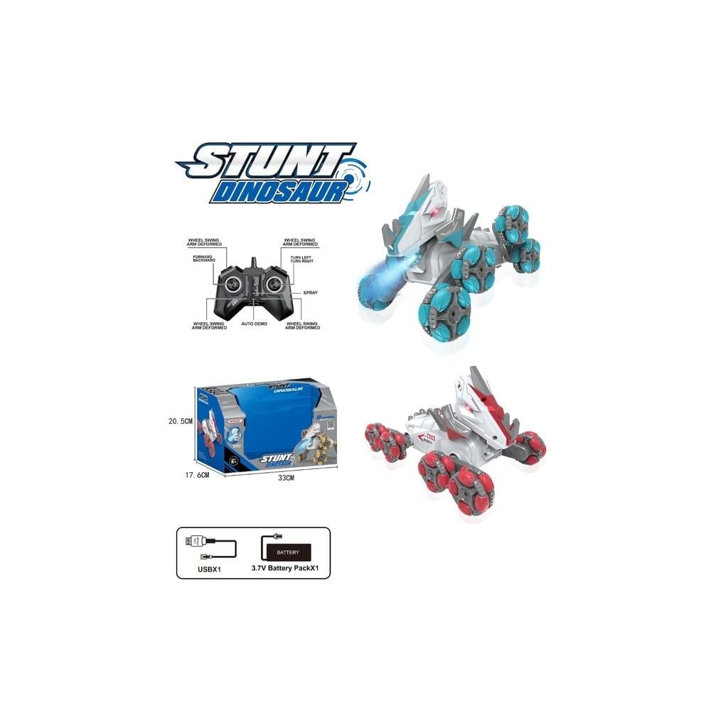 Xe điều khiển từ xa stunt dinosaur mang thiết kế khủng long robot hiện đại với ngoại hình mạnh mẽ và bánh xe đa hướng cho khả năng di chuyển linh hoạt. Sản phẩm có tính năng biến hình bánh xe, phun khói màu và thực hiện nhiều động tác nhào lộn ấn tượng, mang đến trải nghiệm điều khiển sống động như thật.
