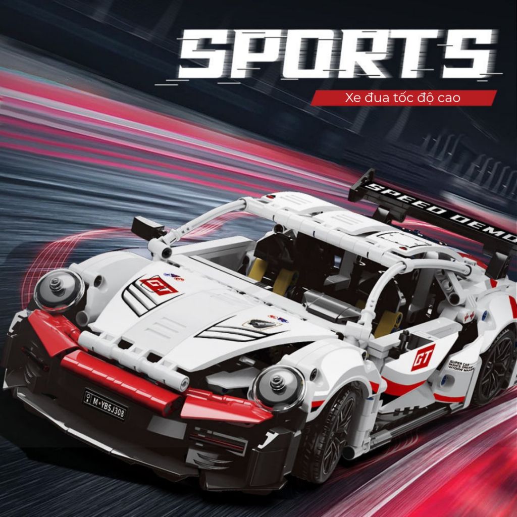 Đồ chơi lắp ráp siêu xe GT phiên bản trắng đỏ – 1202 chi tiết | Mô hình xe đua tốc độ