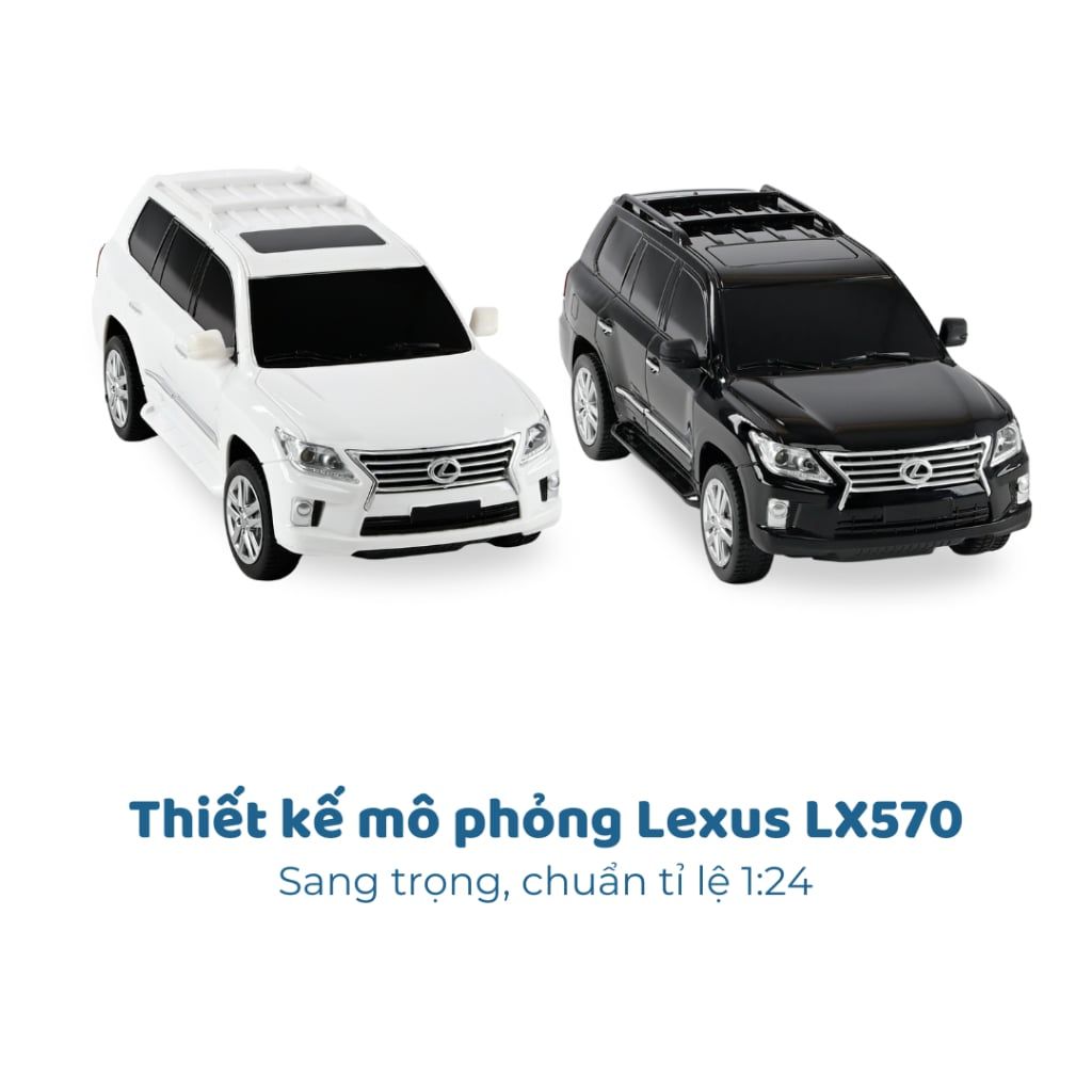 Thiết kế mô phỏng Lexus LX570 sang trọng, chuẩn tỉ lệ 1:24, chi tiết sắc nét từ lưới tản nhiệt, đèn pha đến la-zăng.