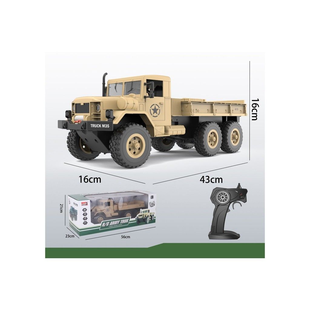 Khám phá sức mạnh và sự bền bỉ với xe tải quân sự điều khiển từ xa 6 bánh. Sản phẩm được thiết kế mô phỏng xe quân sự thật, khả năng vận hành mạnh mẽ, dễ dàng vượt qua nhiều dạng địa hình, mang đến trải nghiệm lái xe đầy kịch tính.