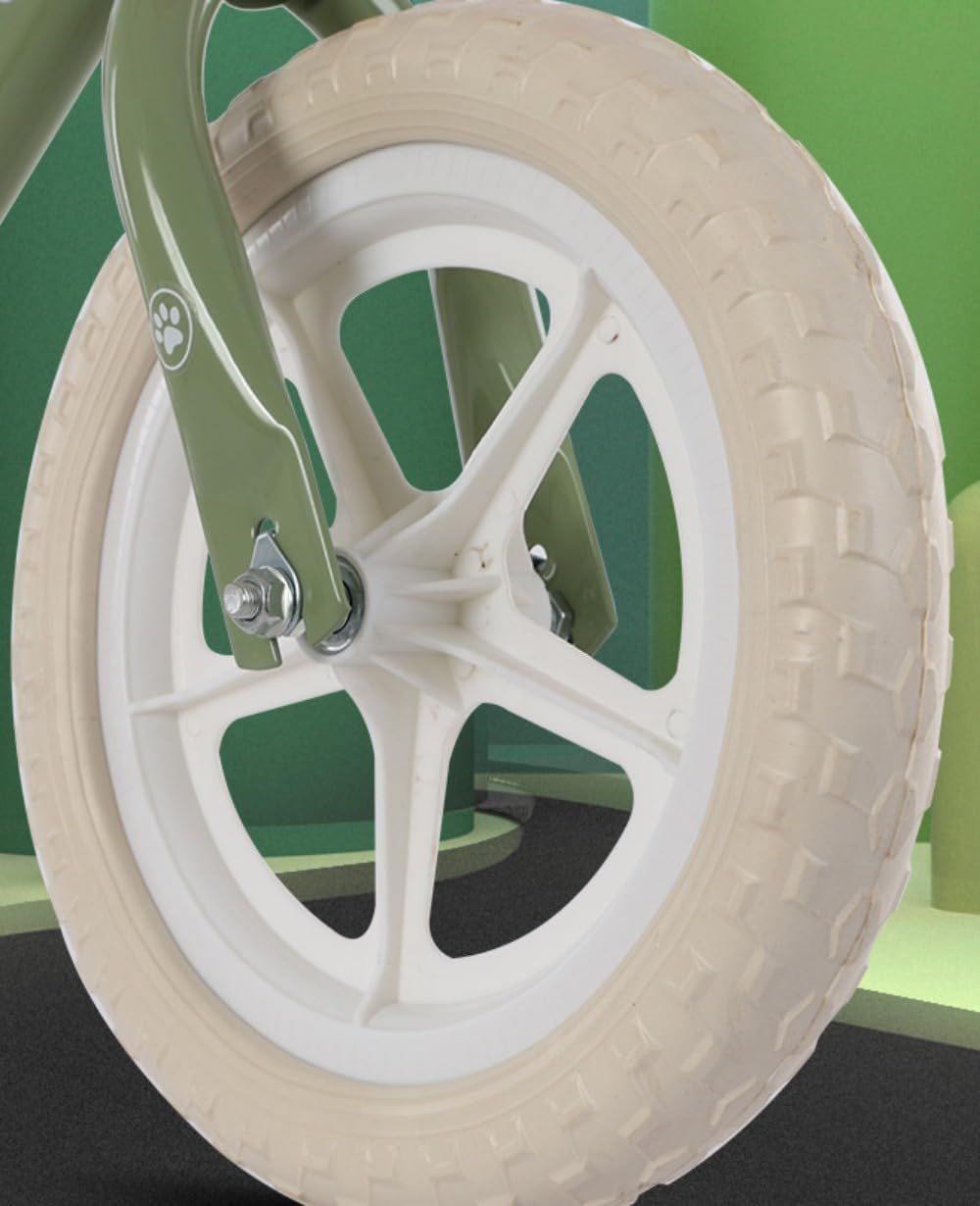 Bánh hơi cao su bám đường tốt, di chuyển êm ái trên nhiều loại địa hình. Ghế bọc da PU mềm mại và tay lái bọc cao su chống trơn trượt, cả hai đều có thể điều chỉnh độ cao linh hoạt, phù hợp với từng giai đoạn phát triển của bé.